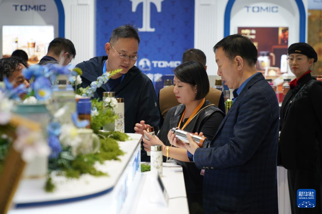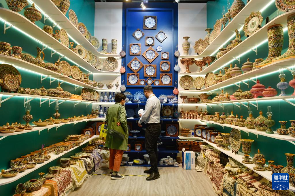 这是11月5日在第八届进博会消费品展区拍摄的来自伊朗的陶瓷制品。