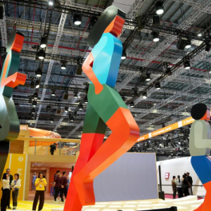 11月5日,人们在第八届进博会举办地国家会展中心(上海)拍照留影。
