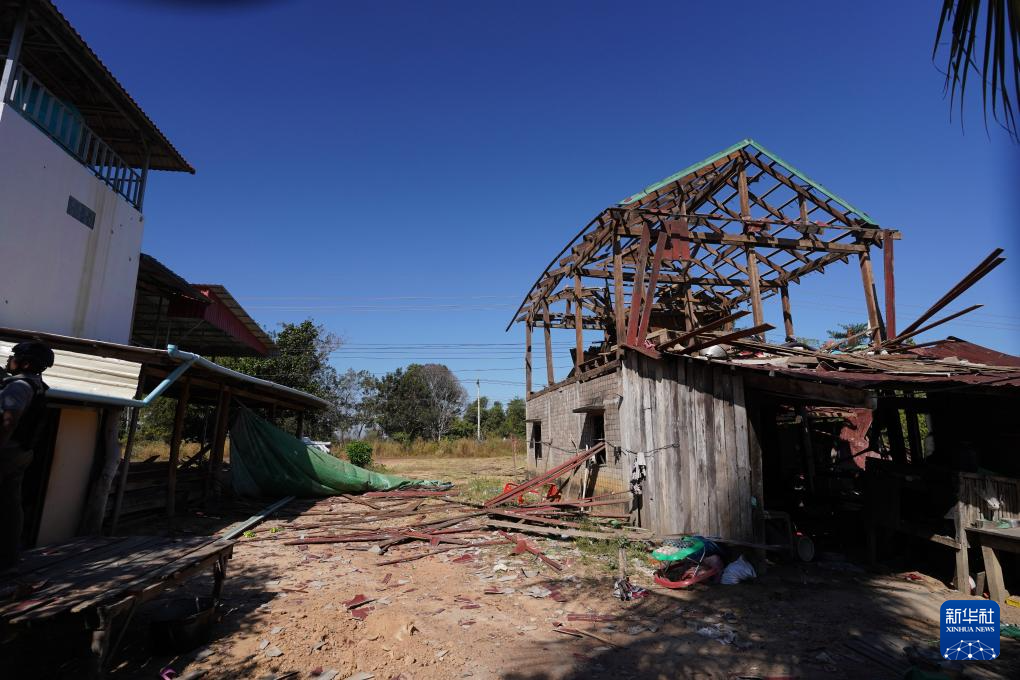 这是12月20日在柬埔寨奥多棉吉省拍摄的在冲突中受损的房屋。