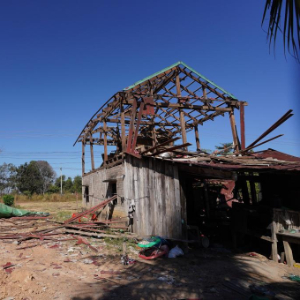 这是12月19日在柬埔寨奥多棉吉省拍摄的在冲突中受损的房屋。