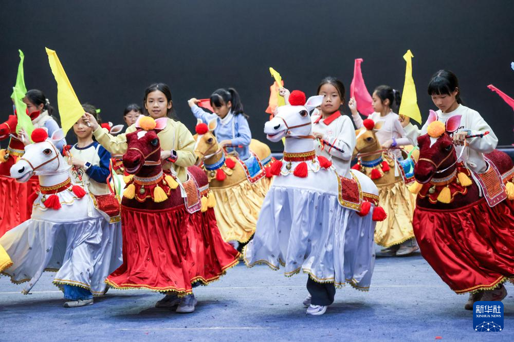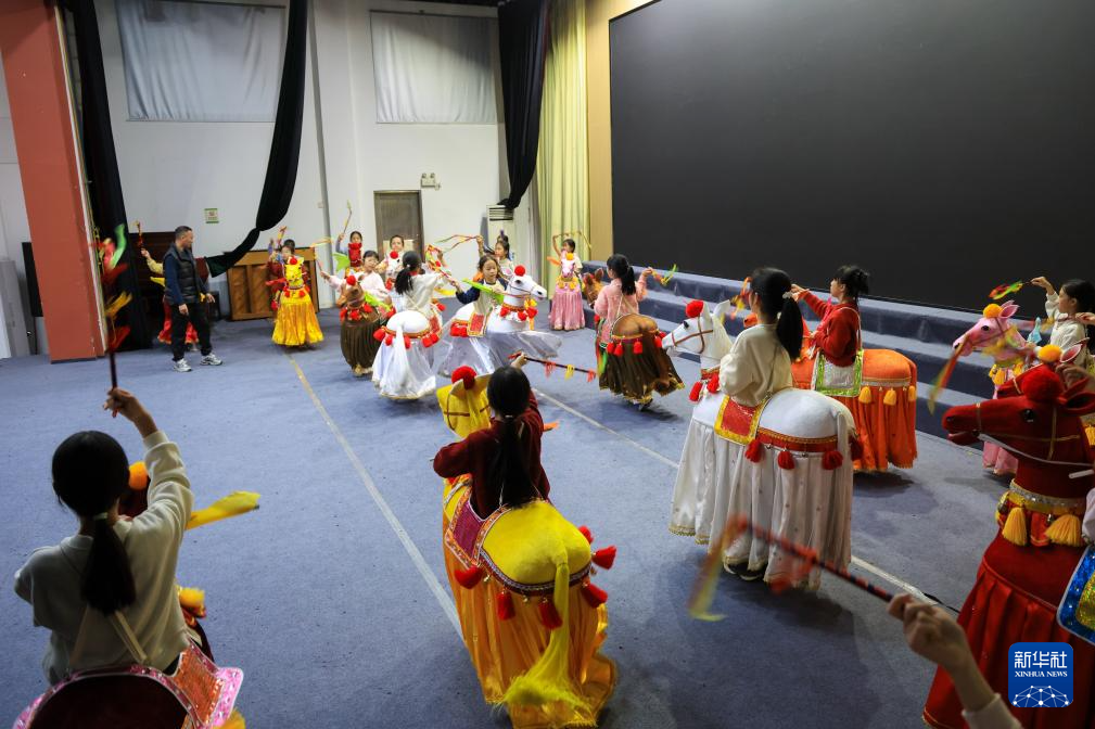 2月4日,在广东省潮州市饶平县青少年宫,少儿布马舞队队员在排练。