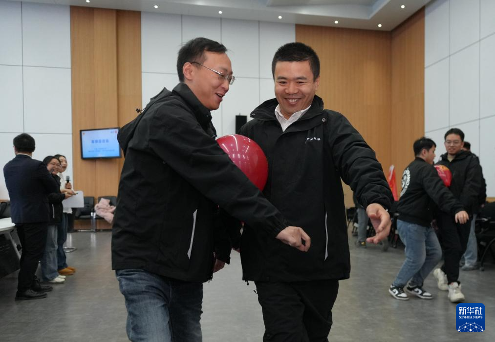 2月5日,在中建二局安装公司雄安国贸中心项目举行的“建证未来 青聚雄安”主题活动上,一线建设者参加名为“双人顶气球”的趣味节目。