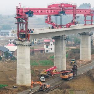 春节临近,在湖南邵(阳)永(州)高铁建设工地,施工人员抢抓工期,确保重点工程建设进度有序推进。