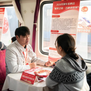 当日,由中国铁路上海局集团有限公司合肥客运段联合合肥市人力资源与社会保障局举办的列车招聘会在上海站开往阜阳站的K8362次列车上举行,为返乡游子架起就业对接的桥梁。