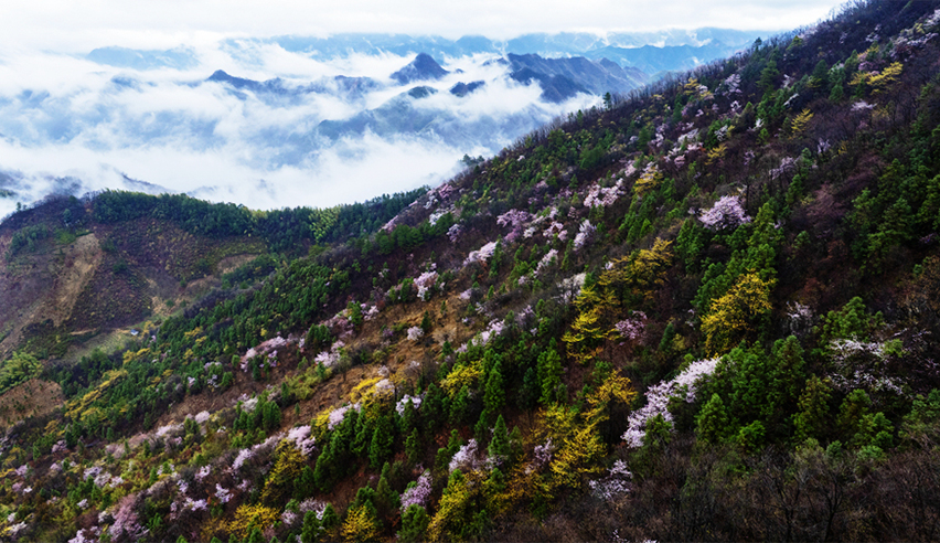 春日云海与野樱花浪漫“同框”