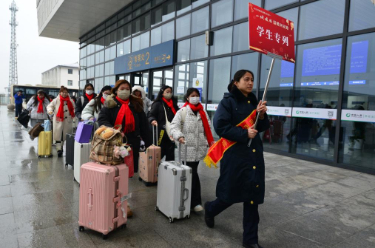 1月19日,G7723次列车从安徽阜阳西站驶出,300余名阜阳高校学子搭乘这趟列车开启寒假回家之旅。这是2026年长三角首趟学生团体包车。