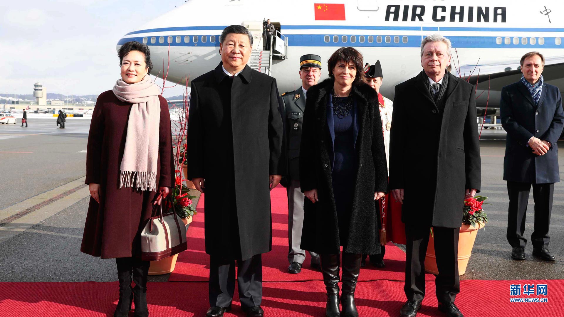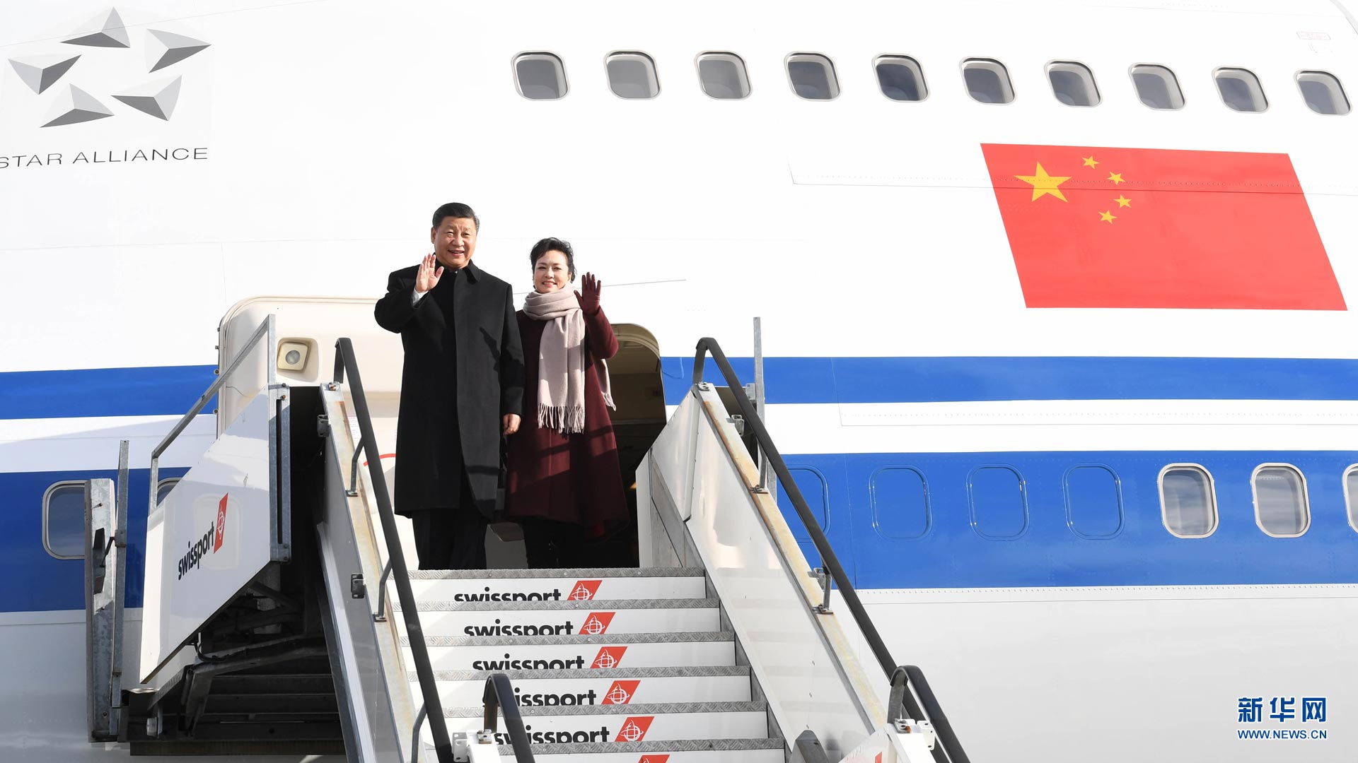 1月16日,國家主席習近平抵達瑞士達沃斯,出席世界經濟論壇2017年年會。 新華社記者 丁林 攝2017-01-17
