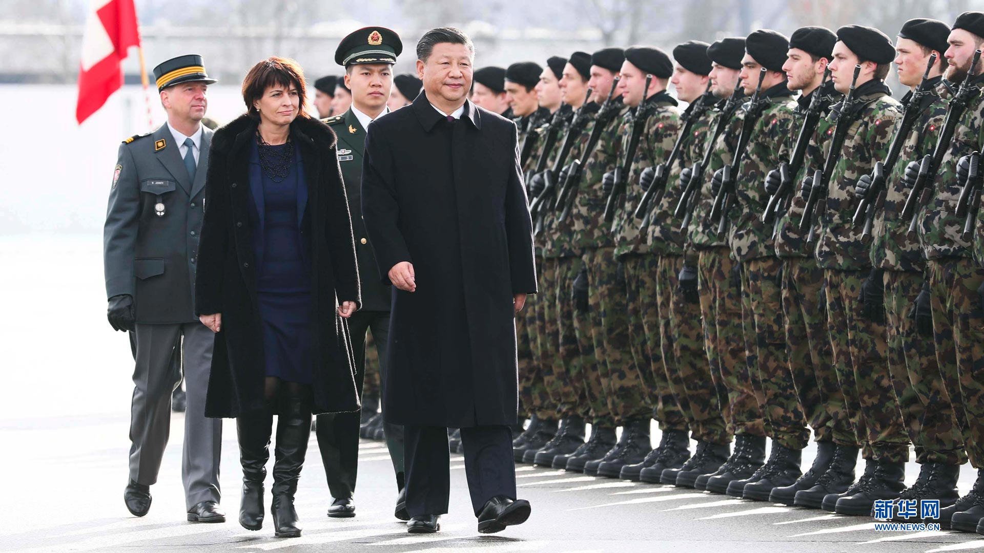 1月15日,國家主席習近平在伯爾尼出席瑞士聯邦委員會全體委員集體舉行的迎接儀式并致辭。 新華社記者謝環馳攝2017-01-16