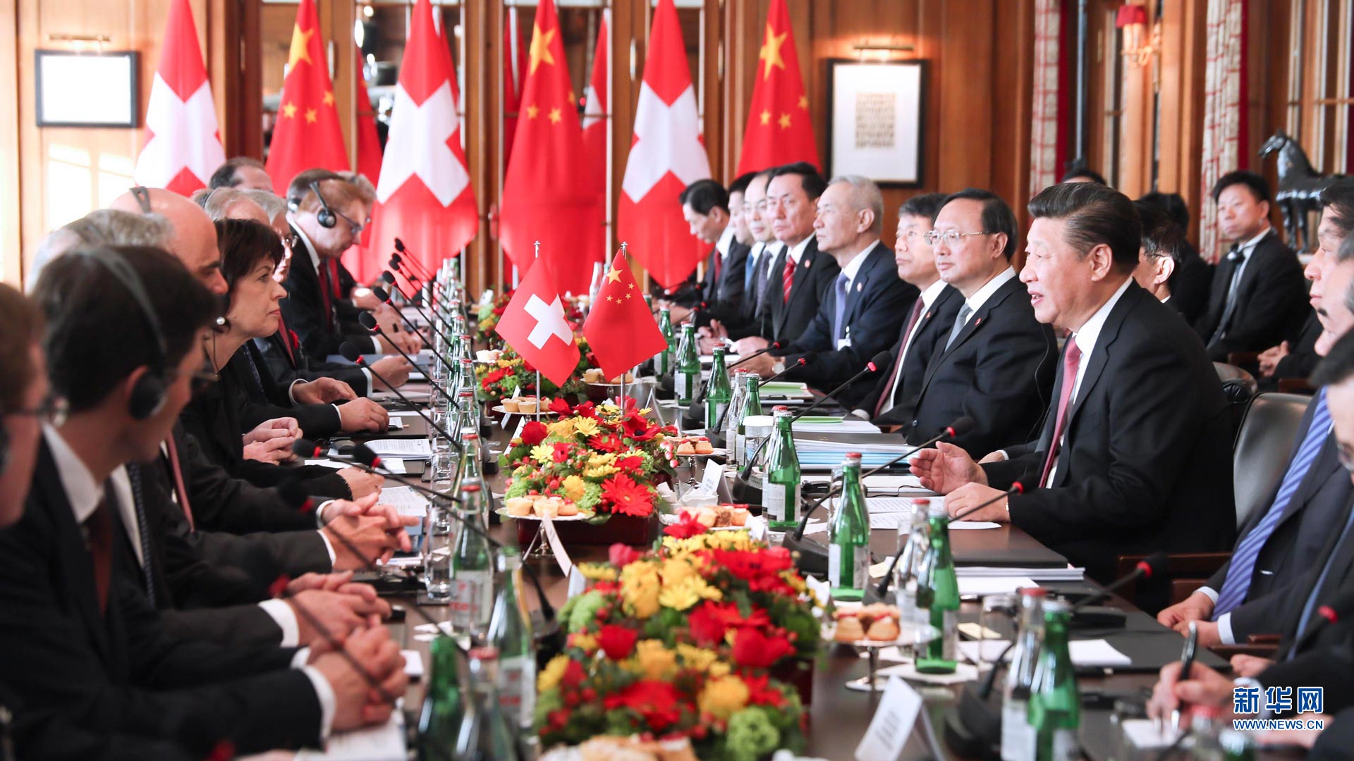 1月16日,國家主席習近平在伯爾尼同瑞士聯邦主席洛伊特哈德舉行會談。 新華社記者 蘭紅光 攝2017-01-17