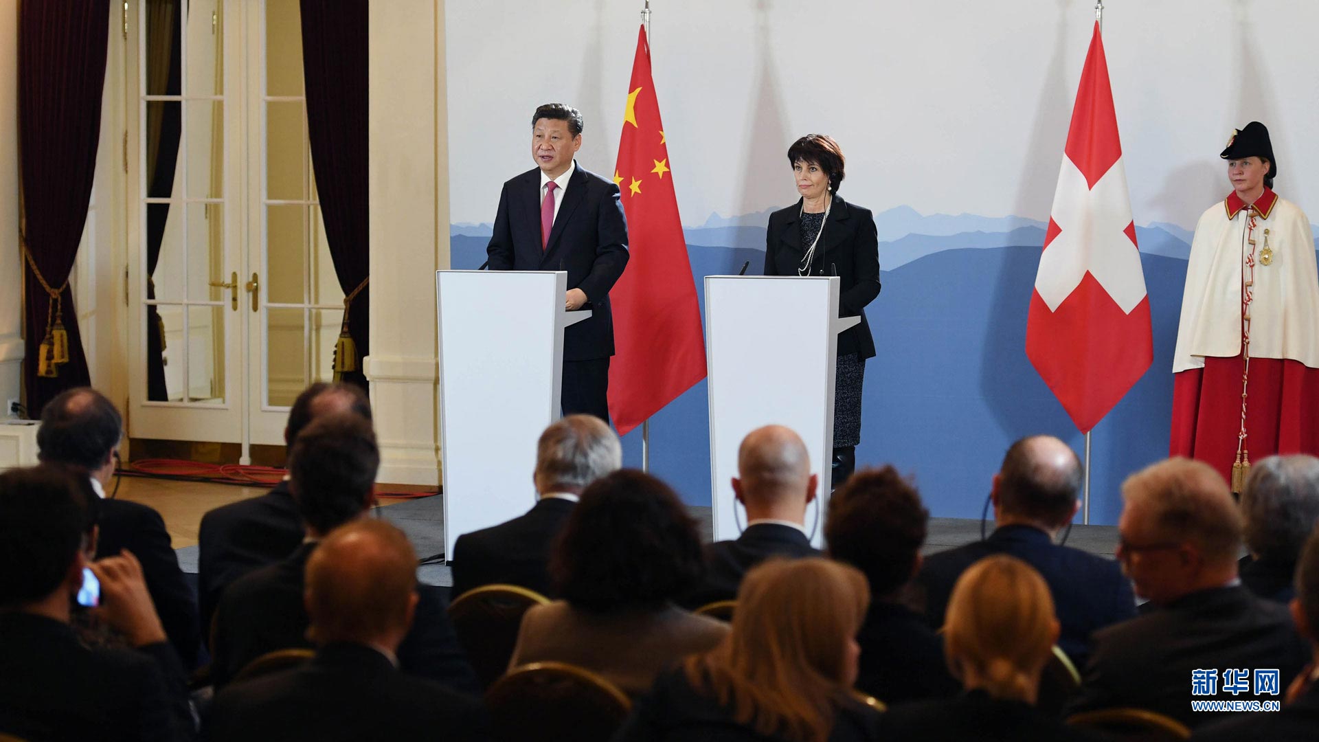 1月16日,國家主席習近平在伯爾尼同瑞士聯邦主席洛伊特哈德舉行會談。這是會談后,兩國元首共同會見記者。新華社記者 饒愛民 攝2017-01-17