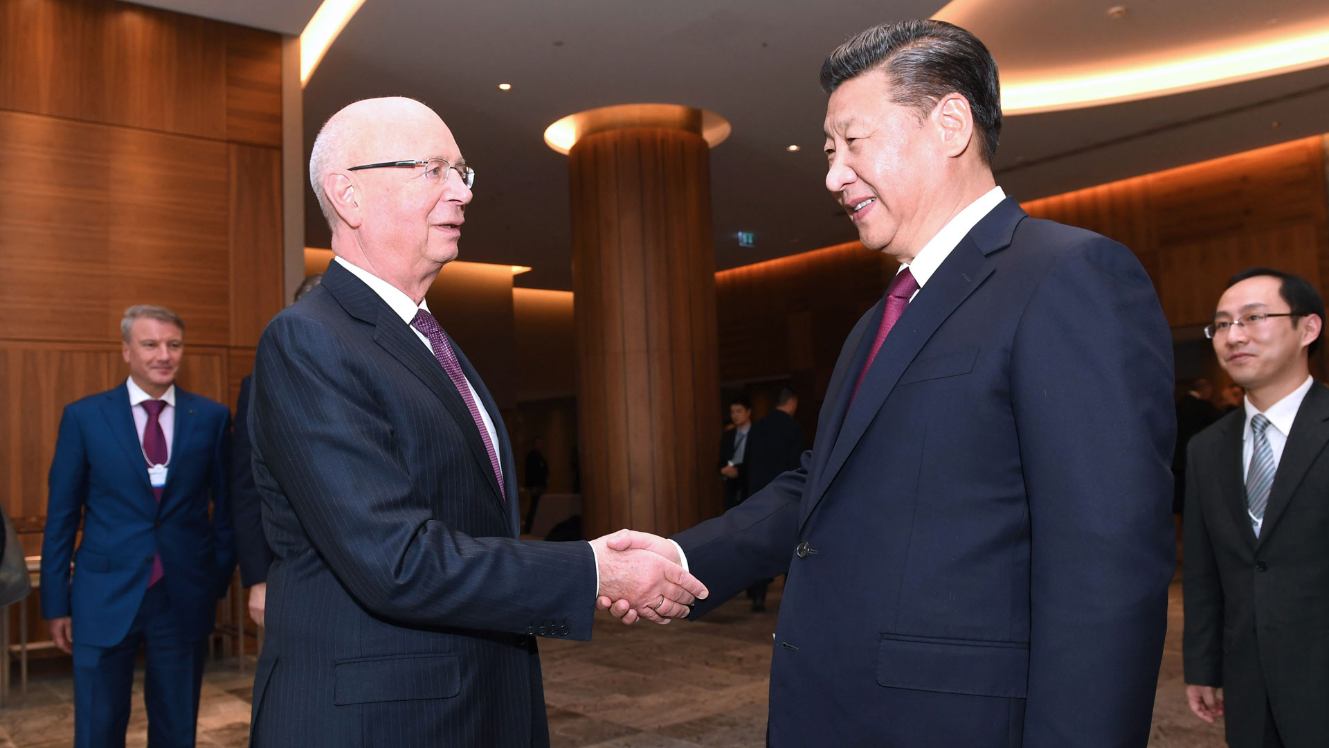 1月17日,國家主席習近平在瑞士達沃斯會見世界經濟論壇主席施瓦布。 新華社記者 饒愛民 攝2017-01-18
