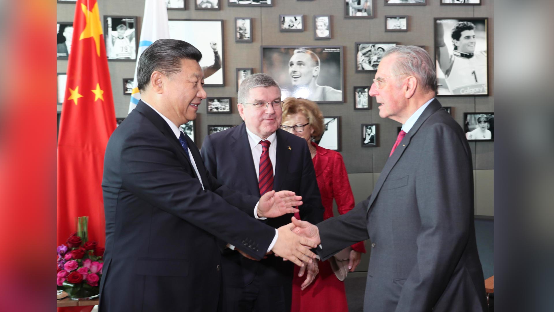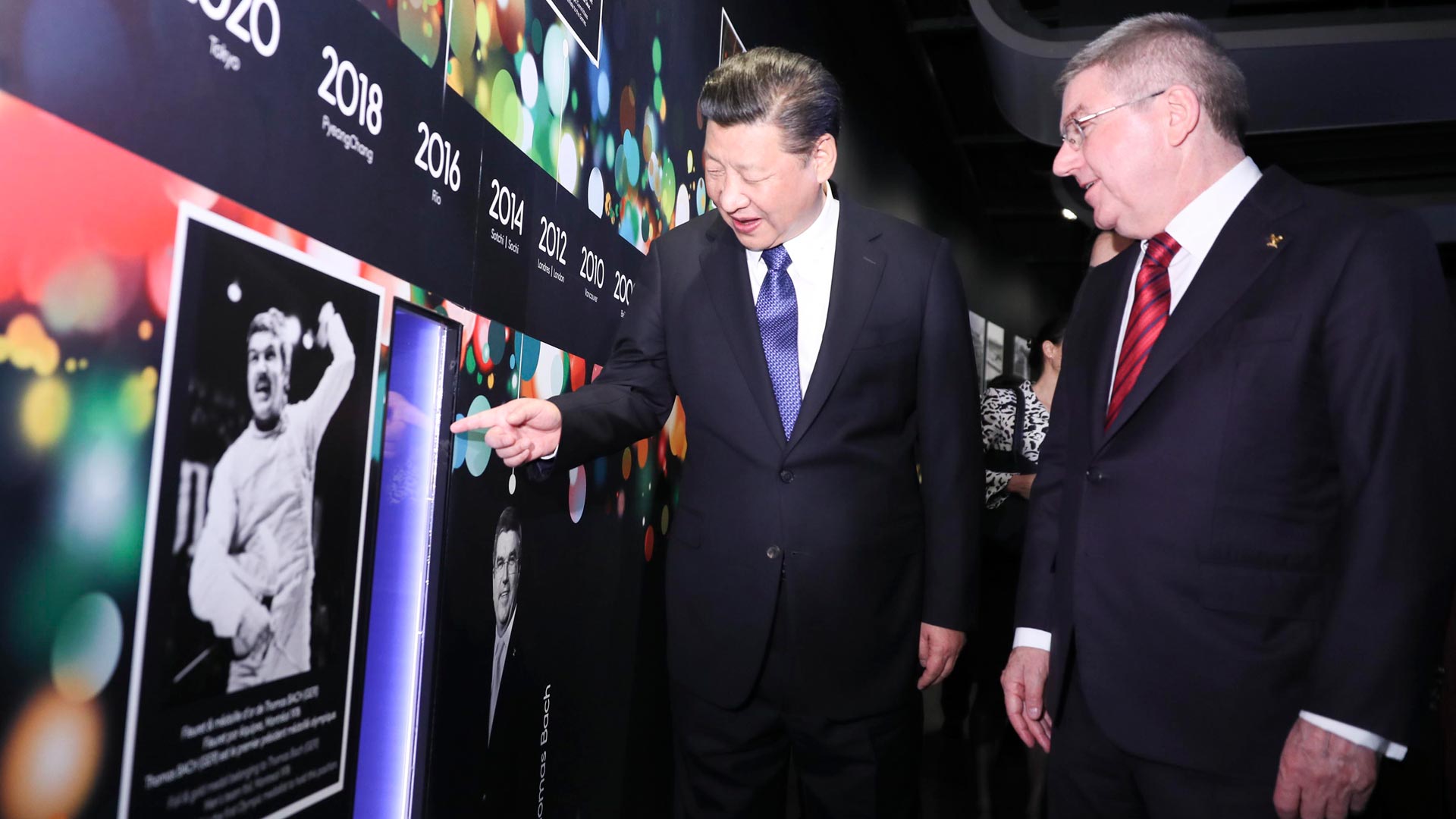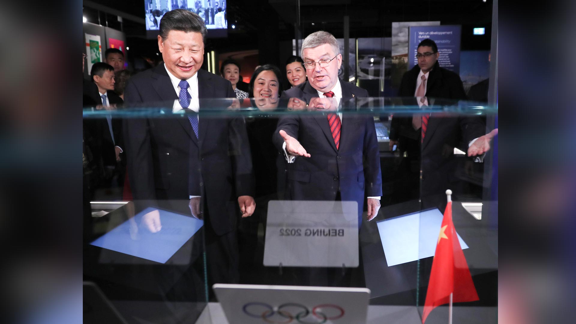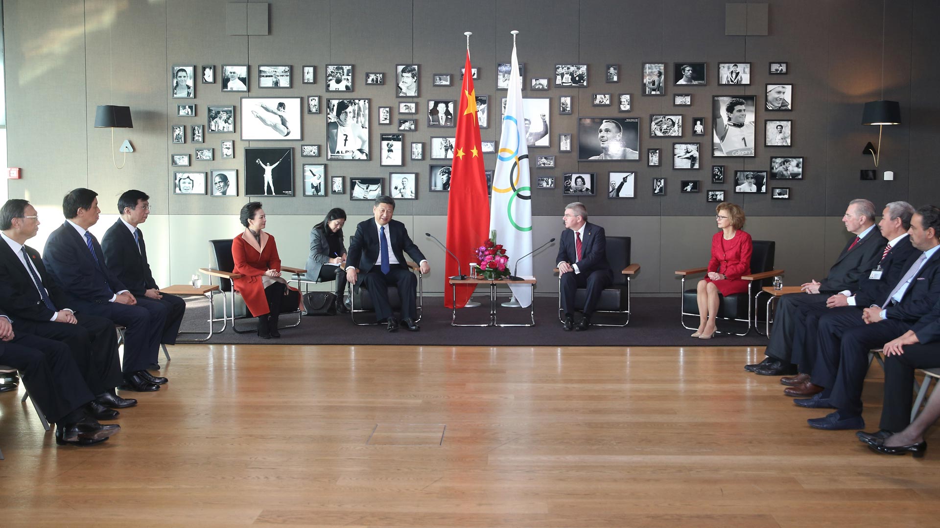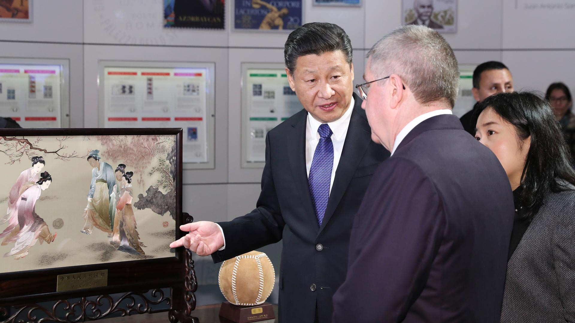 1月18日,國家主席習近平在瑞士洛桑國際奧林匹克博物館會見國際奧林匹克委員會主席巴赫。 新華社記者 姚大偉 攝2017-01-19