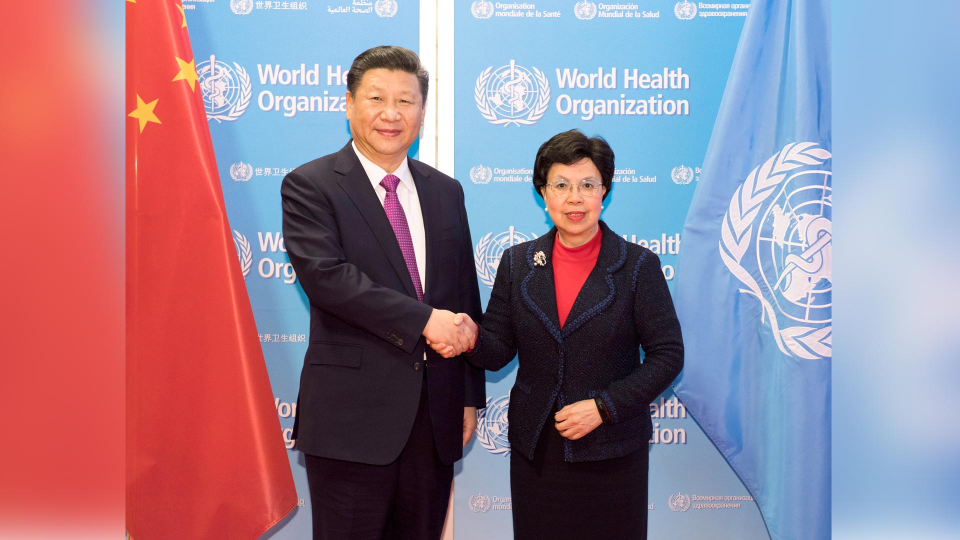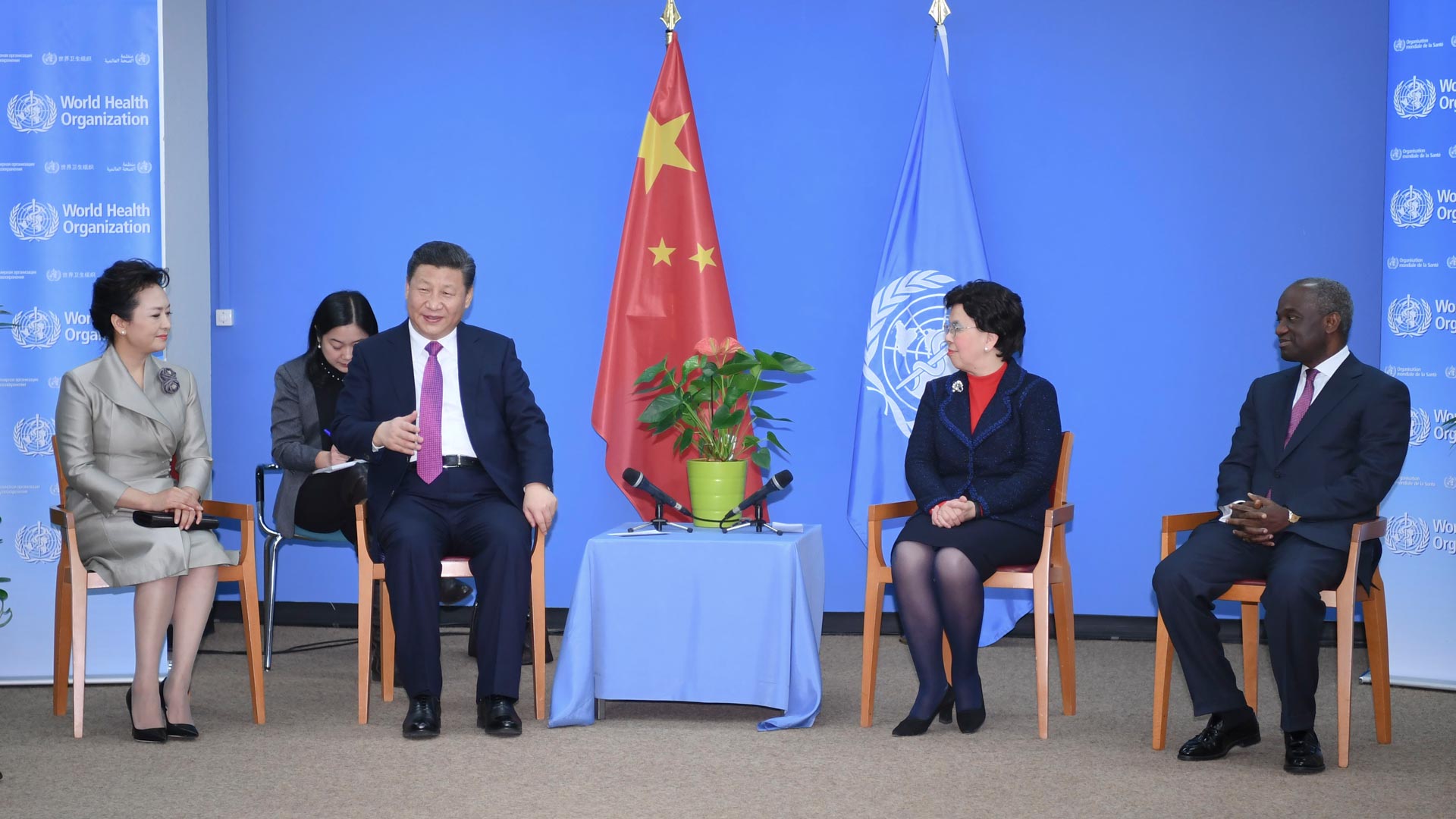 1月18日,國家主席習近平在瑞士日內瓦訪問世界衛生組織并會見陳馮富珍總干事。 新華社記者 李學仁 攝2017-01-19