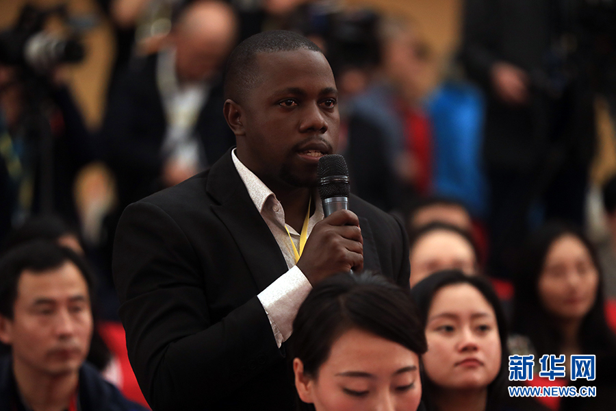 ??? 10月19日,十九大新聞中心舉辦集體采訪,邀請政法戰線代表談全面推進依法治國。圖為烏干達New Vision報紙記者提問。新華網 郝廣鵬攝
