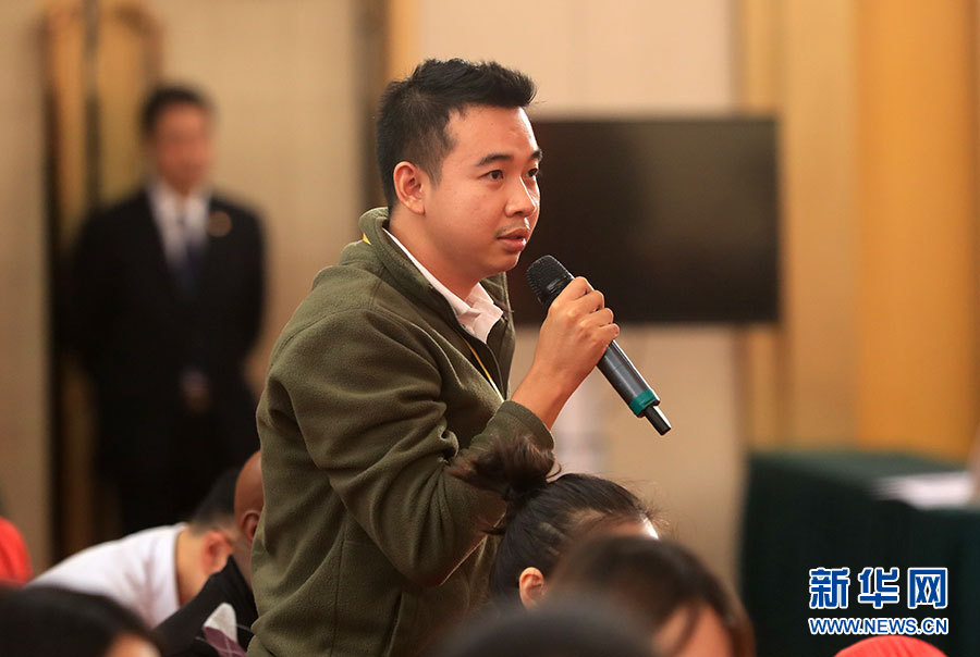 ??? 10月19日,十九大新聞中心舉辦集體采訪,邀請政法戰線代表談全面推進依法治國。圖為柬埔寨國家電視臺記者。新華網 郝廣鵬攝