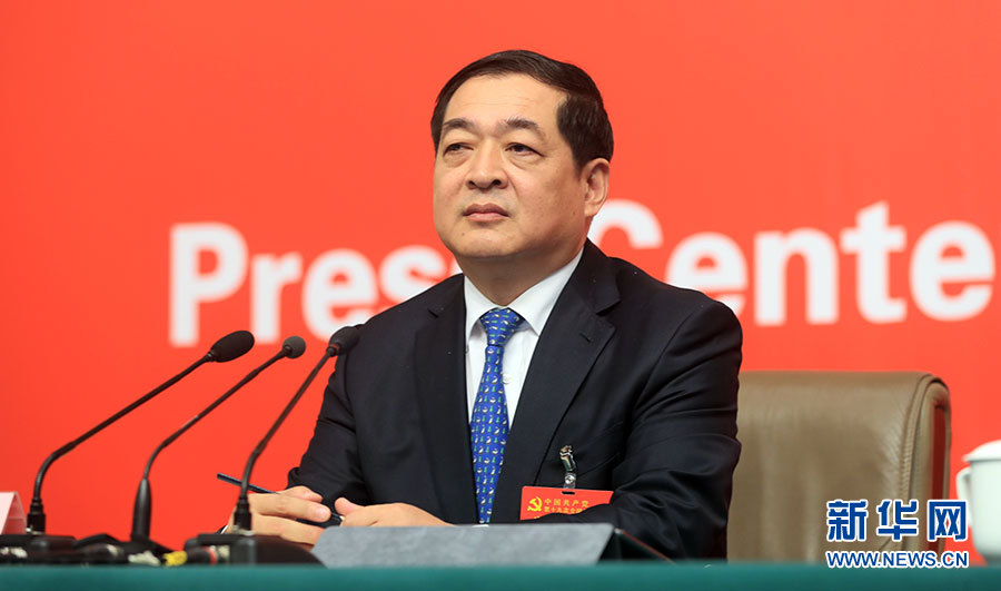 ??? 10月19日,十九大新聞中心舉辦集體采訪,邀請(qǐng)工信和通訊領(lǐng)域代表談走新型工業(yè)化道路。圖為山東省經(jīng)濟(jì)和信息化委員會(huì)黨組書記、主任錢煥濤。新華網(wǎng) 郝廣鵬攝