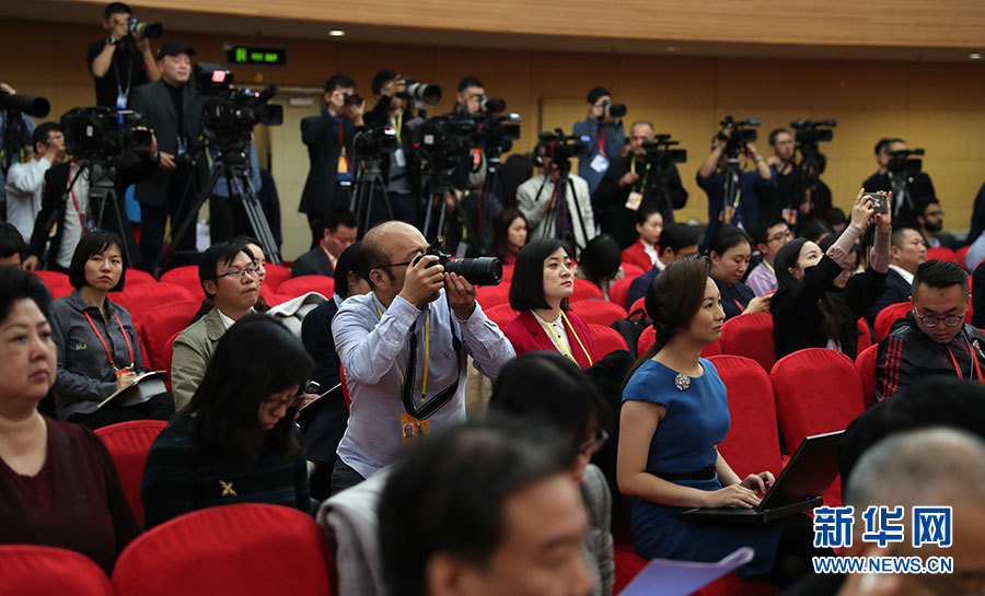 ??? 10月19日,十九大新聞中心舉辦集體采訪,邀請(qǐng)工信和通訊領(lǐng)域代表談走新型工業(yè)化道路。圖為采訪現(xiàn)場。新華網(wǎng) 郝廣鵬攝