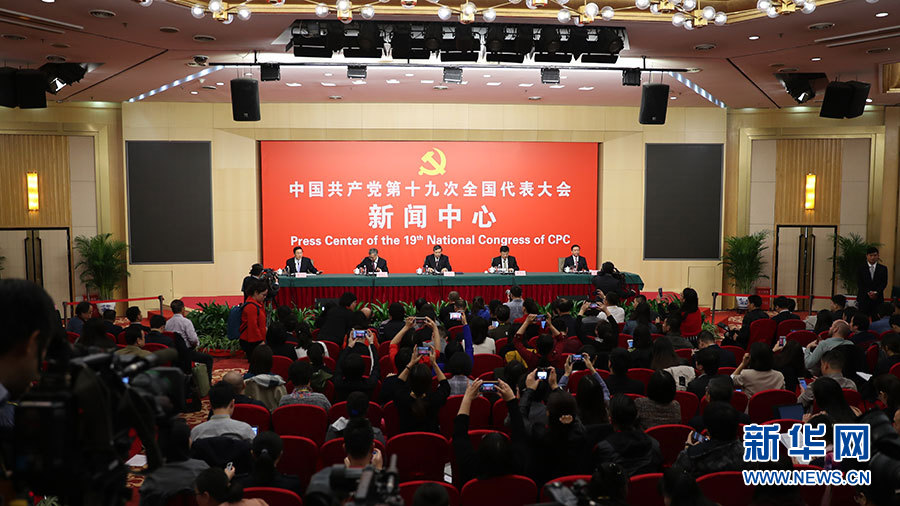 ??? 10月20日,十九大新聞中心舉行記者會,邀請中宣部、中央文明辦、文化部、新聞出版廣電總局相關負責人介紹加強思想道德和文化建設情況,并回答記者提問。圖為記者會現場。新華網 郝廣鵬 攝