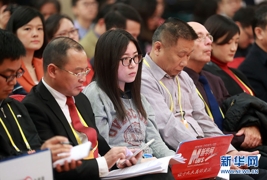 ??? 10月20日,十九大新聞中心舉行記者會,邀請中宣部、中央文明辦、文化部、新聞出版廣電總局相關(guān)負(fù)責(zé)人介紹加強(qiáng)思想道德和文化建設(shè)情況,并回答記者提問。圖為記者會現(xiàn)場。新華網(wǎng) 郝廣鵬 攝