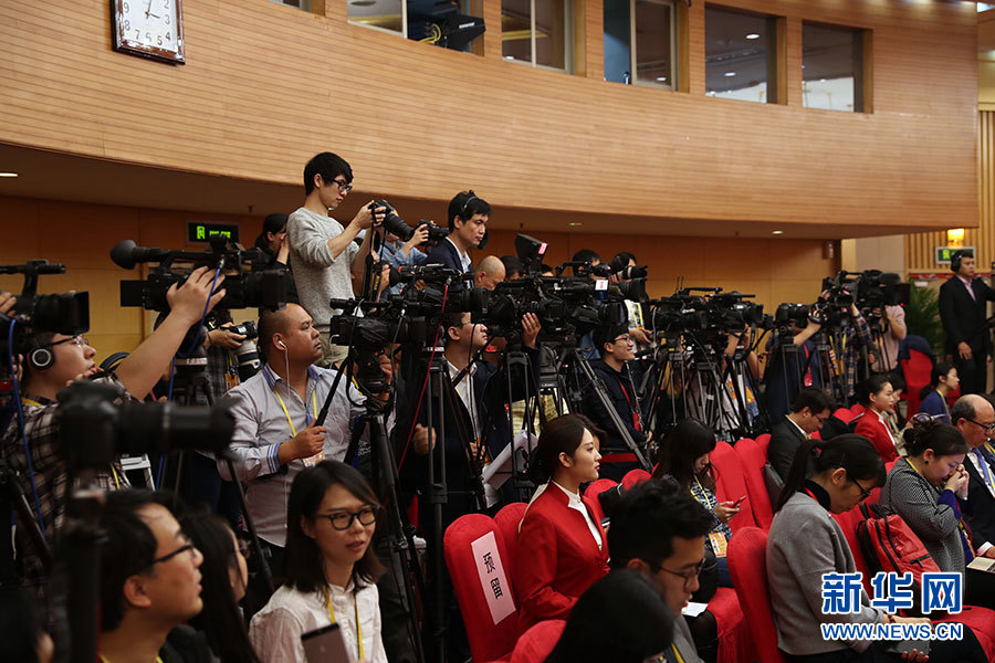 ??? 10月20日,十九大新聞中心舉辦集體采訪活動,主題為“文化發展開創新局面”。圖為現場記者。新華網 陳杰攝