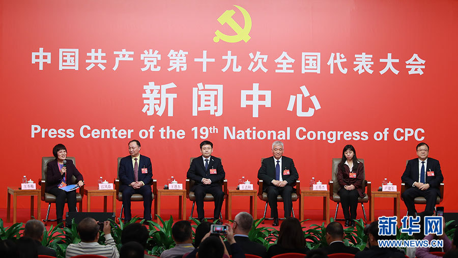 10月20日,十九大新聞中心舉辦集體采訪活動,主題為“實施創新驅動發展戰略”。圖為集體采訪現場。新華網 郝廣鵬攝