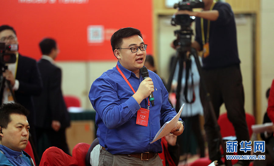 10月22日,十九大新聞中心在梅地亞中心二層新聞發布廳舉辦集體采訪活動,邀請教育領域代表談“教育綜合改革”。圖為中國教育電視臺記者提問。新華網 郝廣鵬攝