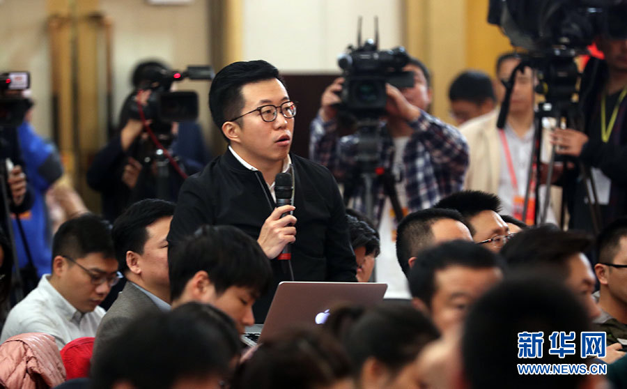 10月22日,十九大新聞中心在梅地亞中心二層新聞發布廳舉辦集體采訪活動,主題為“中國特色強軍之路邁出堅定步伐”。圖為鳳凰衛視記者提問。新華網 郝廣鵬攝
