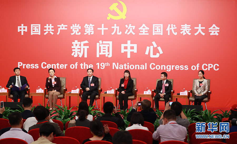 10月23日,十九大新聞中心舉辦集體采訪活動,主題為“打好生態(tài)環(huán)保攻堅戰(zhàn)”。圖為集體采訪活動現(xiàn)場。新華網(wǎng) 郝廣鵬攝