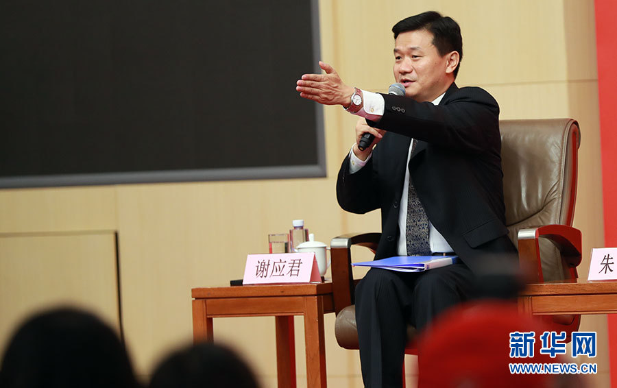 10月23日,十九大新聞中心舉辦集體采訪活動,主題為“打好生態(tài)環(huán)保攻堅戰(zhàn)”。圖為主持人謝應(yīng)君。新華網(wǎng) 郝廣鵬攝