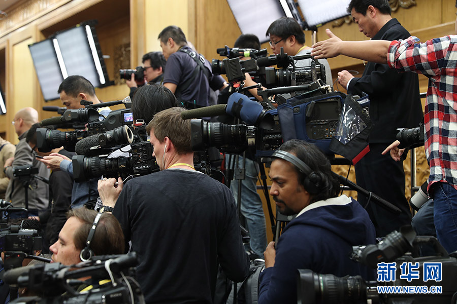 ??? 10月25日,黨的十九屆中央委員會第一次全體會議新選出的中央政治局常委將同中外記者見面。圖為中外記者在見面會現場進行準備工作。新華網 翟子赫 攝
