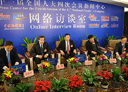 [新華網、中國政府網現場報道]2011年3月6日晚20時,新華網等11家網站聯合開展主題為“加快發展新能源”的網絡訪談,4位全國人大代表將在梅地亞兩會新聞中心就加快發展新能源,并結合聽取和審議政府工作報告,與網民在線交流。 [2011-03-06 19:47:25]