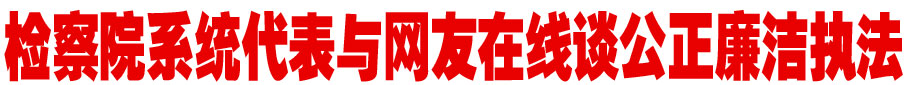 [主持人]各位網友,大家晚上好。今天結合代表聽取和審議最高人民法院、檢察院工作報告,圍繞如何依法保障民生、公正廉潔執法這一主題,大會新聞中心邀請到了檢察院系統的三位全國人大代表,與網民進行在線交流。首先我把這三位代表介紹給大家,他們是:四川省人民檢察院檢察長、黨組書記、二級大檢察官鄧川先生,江蘇省人民檢察院檢察長、黨組書記、二級大檢察官徐安先生,河北省邯鄲市人民檢察院副檢察長、黨組成員賈春梅女士。 [2011-03-12 20:04:07]