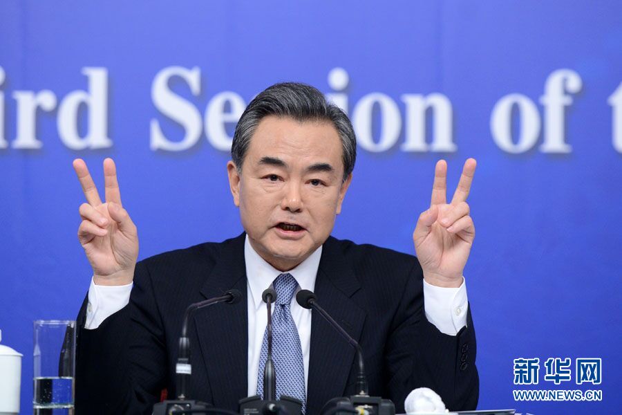 ??? 十二屆全國人大三次會議新聞中心于3月8日(星期日)10時在梅地亞中心多功能廳舉行記者會,邀請外交部部長王毅就中國的外交政策和對外關系相關問題回答中外記者提問。圖為外交部部長王毅回答記者提問。新華網/中國政府網 郭小天 攝