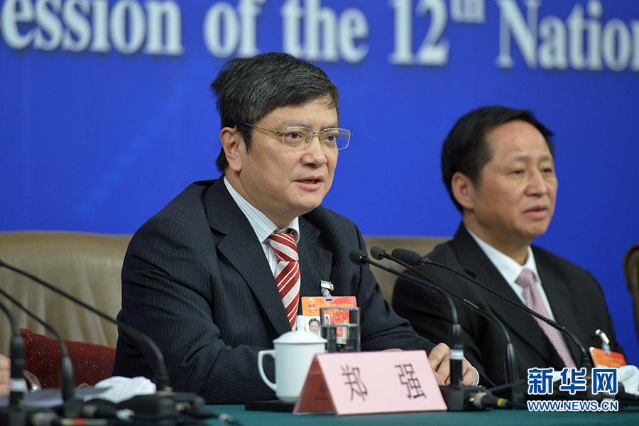 ????3月13日上午10時,十二屆全國人大三次會議新聞中心邀請四川大學(xué)校長謝和平、江蘇省教育廳廳長沈健、廣東省教育廳廳長羅偉其、海南大學(xué)校長李建保、貴州大學(xué)校長鄭強(qiáng)就完善高等教育治理結(jié)構(gòu)的相關(guān)問題回答中外記者提問。圖為貴州大學(xué)校長鄭強(qiáng)答記者問。新華網(wǎng)/中國政府網(wǎng) 郭小天 攝