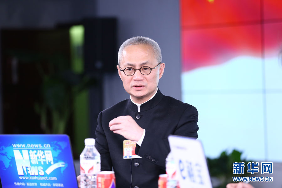 ??? 2015年3月14日,全國人大代表、鳳凰古城文化旅游投資股份有限公司董事長葉文智做客新華會客廳。圖為葉文智解答主持人問題。新華網 李江 攝