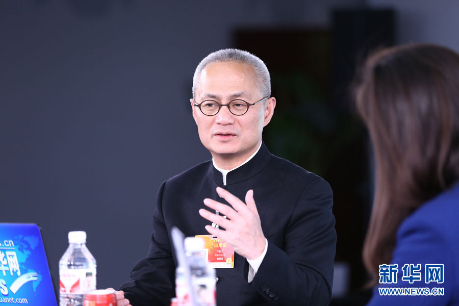 ??? 2015年3月14日,全國人大代表、鳳凰古城文化旅游投資股份有限公司董事長(zhǎng)葉文智做客新華會(huì)客廳。圖為葉文智與主持人交談。新華網(wǎng) 李江 攝