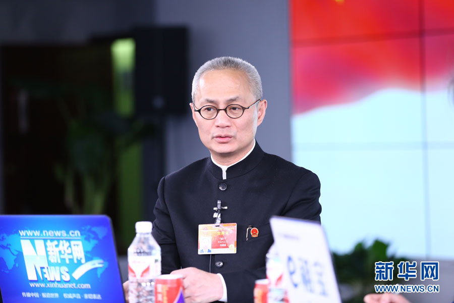 ??? 2015年3月14日,全國人大代表、鳳凰古城文化旅游投資股份有限公司董事長葉文智做客新華會客廳。圖為葉文智在訪談中。新華網 李江 攝