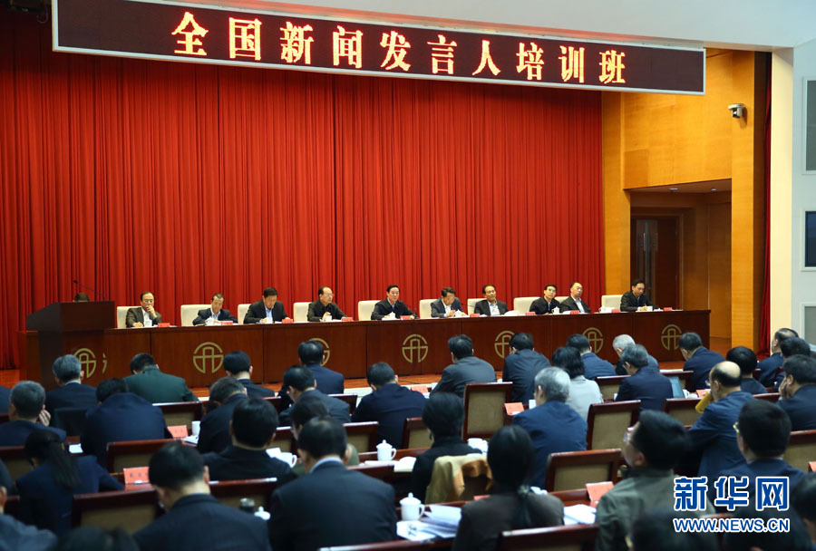 ???? 3月28日,中共中央政治局委員、中央書記處書記、中宣部部長劉奇葆在北京與全國新聞發言人培訓班學員座談。 新華社記者丁海濤攝