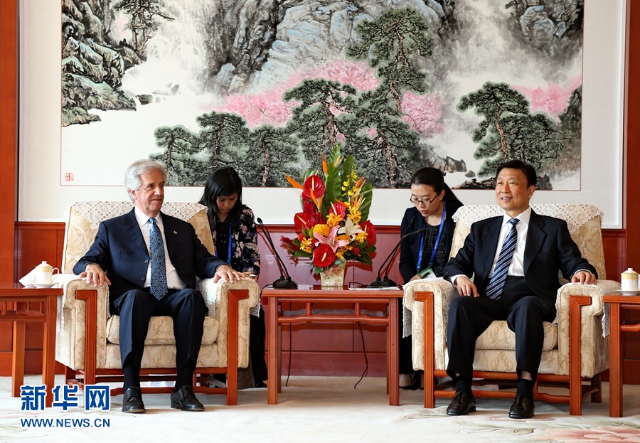 10月14日,中國國家副主席李源潮在河北唐山會見參加第十屆中國-拉美企業家高峰會的烏拉圭總統塔瓦雷·巴斯克斯。 新華社記者楊世堯攝