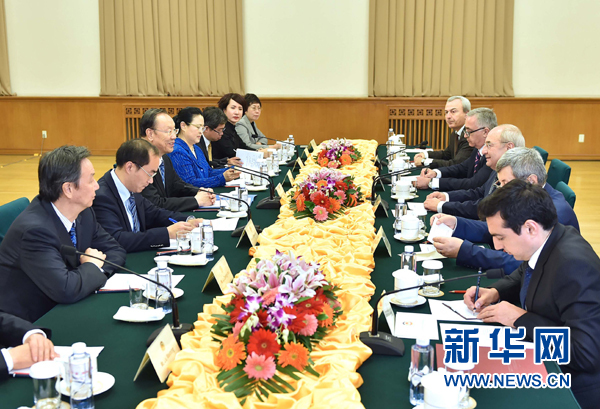 新華社北京11月3日電(記者王慧慧)中共中央書記處書記、全國政協副主席、中國經濟社會理事會主席杜青林3日在北京與亞美尼亞公眾院主席馬努基揚會談。
