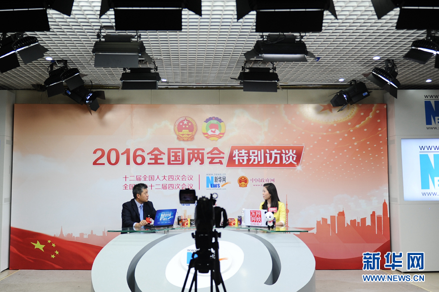 董事長兼總經理王召明做客新華網兩會訪談。圖為王召明在訪談現場。新華網 賈海元 攝