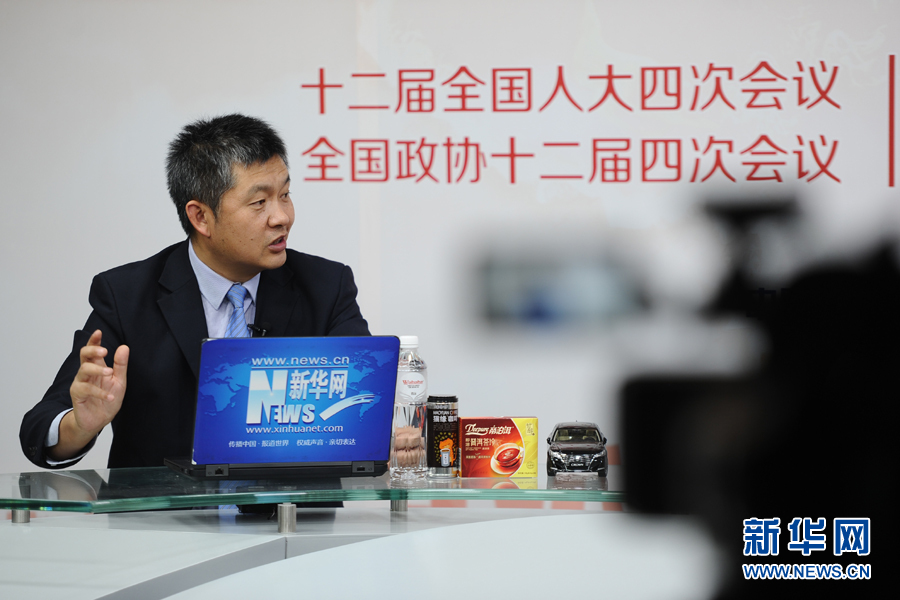 董事長兼總經理王召明做客新華網兩會訪談。圖為王召明在訪談現場。新華網 賈海元 攝