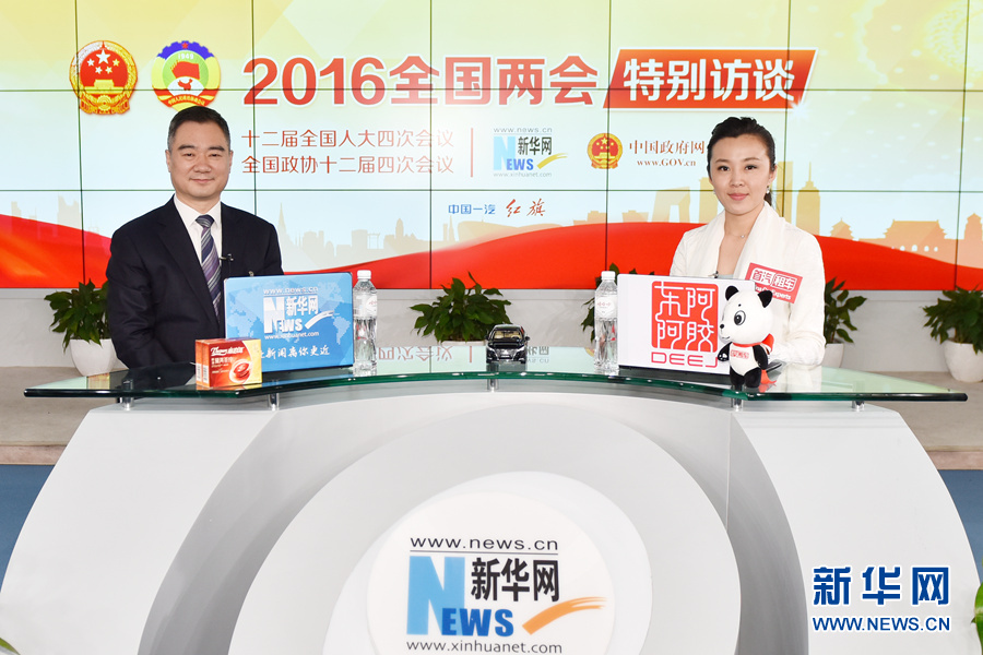 3月12日,全國人大代表,運城市市長王清憲做客新華網2016全國兩會特別訪談,與新華網網友在線交流。圖為王清憲在訪談現場。新華網 付宇鵬 攝