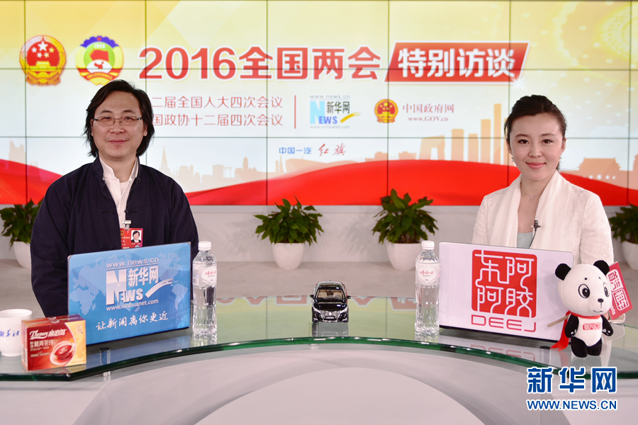 3月13日,全國人大代表、中國文聯全委、中國音樂家協會副主席,上海音樂家協會副主席、上海音樂學院副院長廖昌永做客新華網2016全國兩會特別訪談,與新華網網友在線交流。圖為廖昌永在訪談現場。新華網 郭小天 攝
