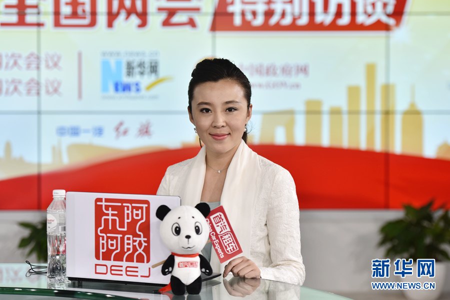 3月13日,全國人大代表、中國文聯全委、中國音樂家協會副主席,上海音樂家協會副主席、上海音樂學院副院長廖昌永做客新華網2016全國兩會特別訪談,與新華網網友在線交流。圖為新華網主持人張姣。新華網 郭小天 攝