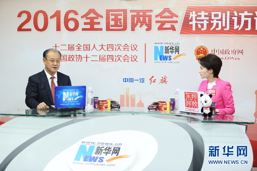 2016年3月13日,全國政協委員,中國中醫科學院廣安門醫院院長王階做客新華網兩會訪談直播間。圖為王階在訪談現場。新華網 盧志佳 攝