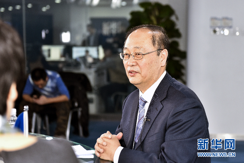 2016年3月13日,全國政協委員,中國航天科工集團公司副總經理魏毅寅做客新華網兩會訪談直播間。圖為魏毅寅在訪談現場。新華網 付宇鵬 攝