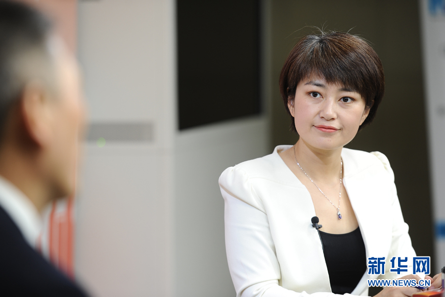 ??? 2016年3月13日,全國(guó)人大代表,煙臺(tái)張?jiān)F咸厌劸乒煞萦邢薰究偨?jīng)理周洪江做客新華網(wǎng)兩會(huì)訪談。圖為新華網(wǎng)主持人苑茵子。新華網(wǎng) 盧志佳 攝