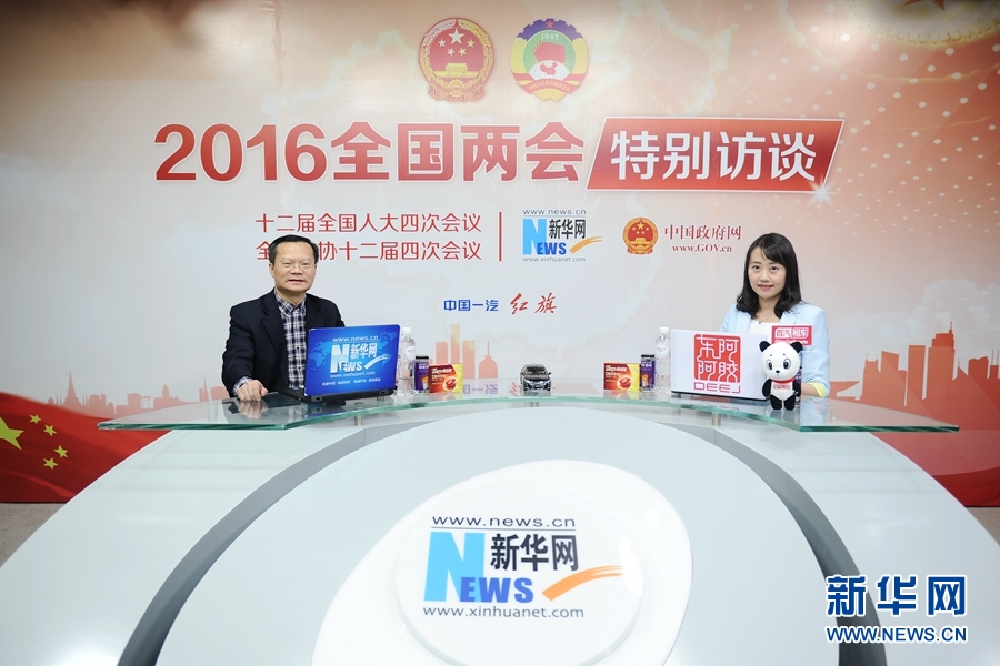 2016年3月14日,全國人大代表、湖南省益陽市委書記胡忠雄做客新華網兩會訪談直播間。圖為胡忠雄在訪談現場。新華網 盧志佳 攝