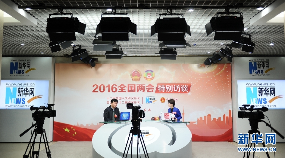 2016年3月14日,全國政協委員,天津達仁堂京萬紅藥業有限公司總經理劉文偉做客新華網2016全國兩會特別訪談,與新華網網友在線交流。圖為訪談現場。新華網 賈海元 攝